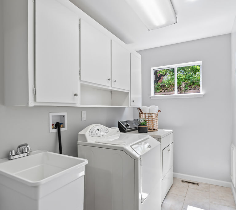 Additional highlights include dedicated mud room located off the garage with washer and dryer hookups, cabinetry, and utility sink; hallway cabinets perfect for displaying treasures; and double sink in the hall bathroom well-suited for guests.